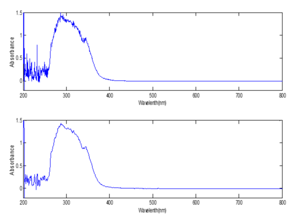 Figure 4: The UV spectrum of the eluent liquid before smoothing (above) and after smoothing (below).