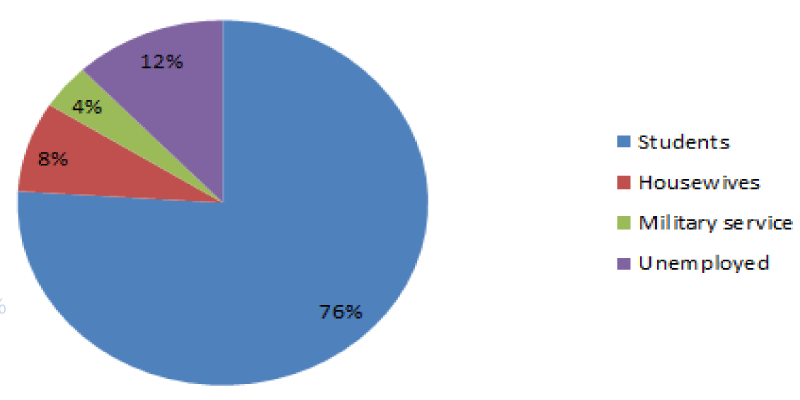 Graph 1: Distribution according to occupation of teenagers with suicide attempt.