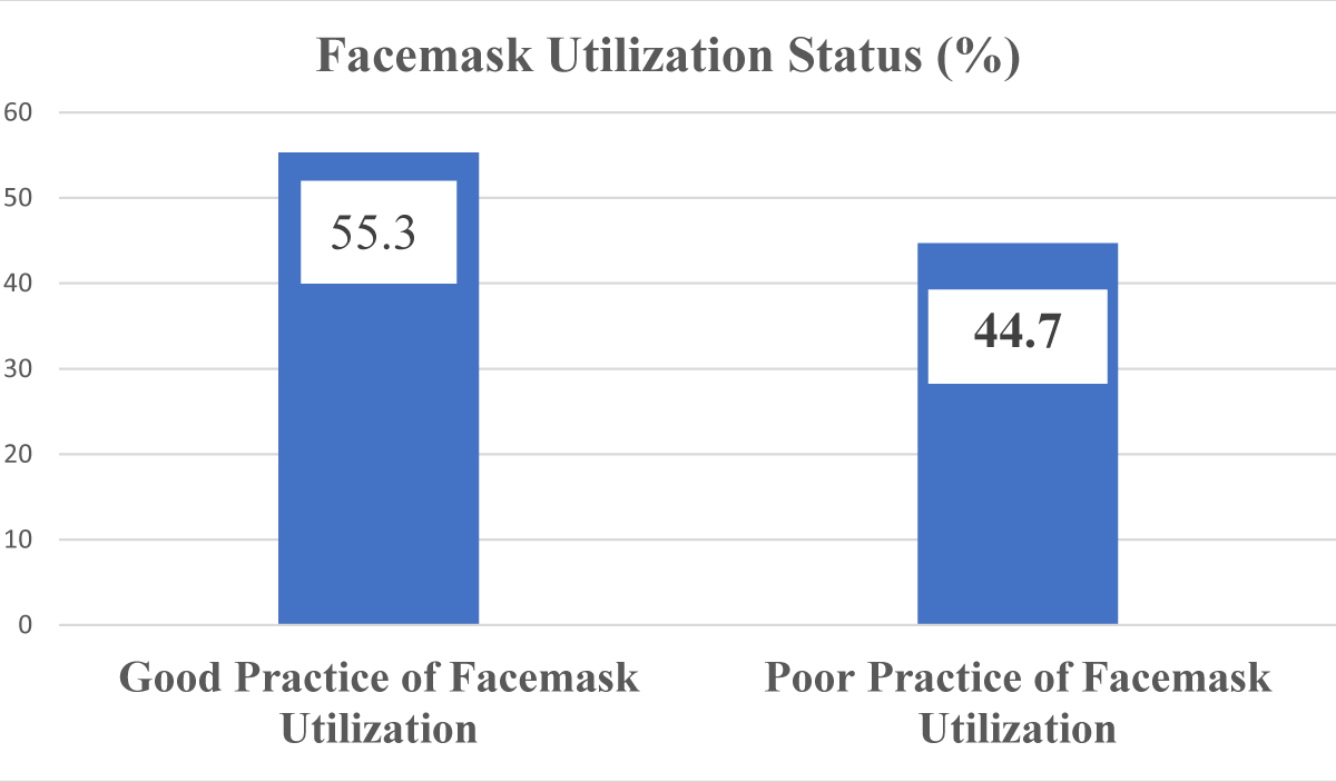 The study found that 213 (53.5%) (95% CI: 1.50-1.60) of the 385 respondents had a good practice of facemask utilization to prevent COVID-19 (Figure 2).