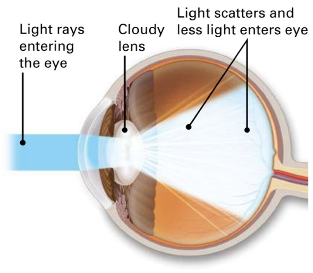 Figure 2: Light rays entering an eye with cataracts are not focused properly on the retina. (Source: https://www.strathfieldeyesurgery.com.au/eye-conditions/cataract/)